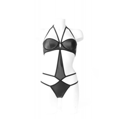Stupendo body nero con corpo centrale a rombo con stringhe. Tutto unito da geometrie semplici e sensuali.