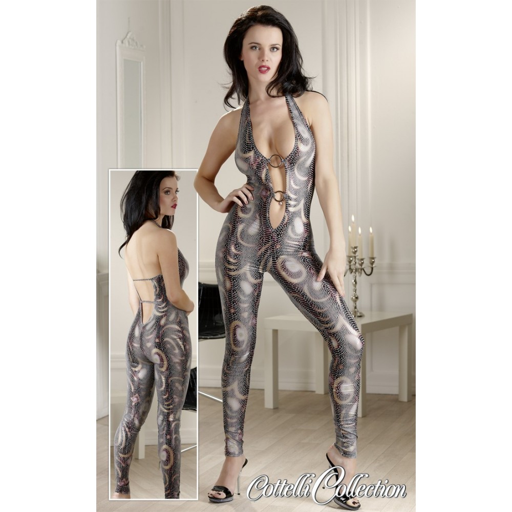 La tuta sexy by cottelli "Snake" aderente di colore grigio con disegni che ricordano la pelle di serpente. Una scollatura profonda sulla parte anteriore con due grandi anelli decorativi la rendono particolarmente sexy e maliziosa. Disponibile nel taglie ideale per una sera in discoteca all' insegna della seduzione. • Materiale: 85% Poliammide, 15% elastan.