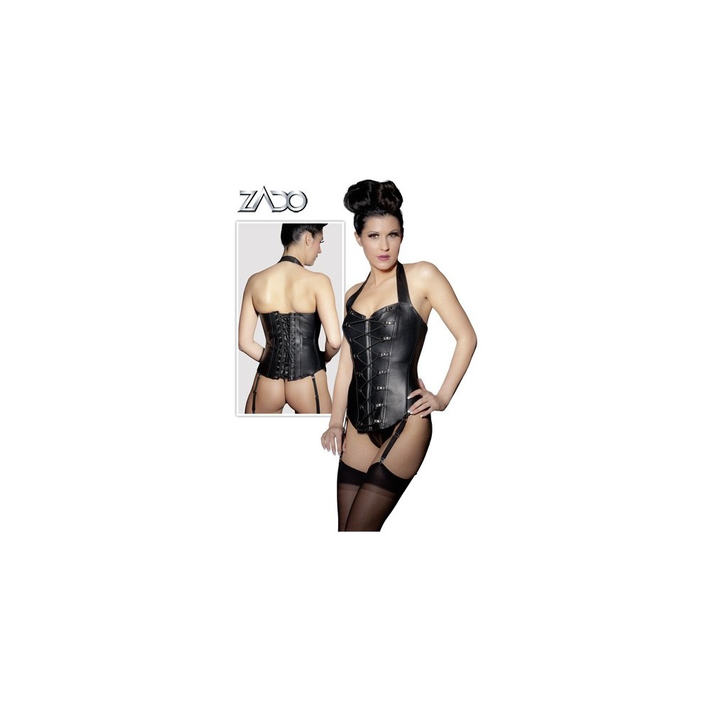 Corsetto in pelle che aderisce perfettamente alle vostre curve. Con cinturino halterneck e incorporata in una struttura rigida per assicurare una vestibilità straordinaria. Con quattro cinghieCorsetto in Pelle nera con Struttura Rigida bretelle regolabili e removibili. Dispone di una cerniera a tutta lunghezza e lacci anteriori e posteriori. Viene fornito con perizoma abbinato