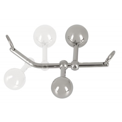 I 2 tappi a sfera di diverse dimensioni scorrono sulla barra liscia e sono quindi regolabili individualmente per chi li indossa. Le sfere possono essere svitate dai colpi e sostituite. Ogni estremità della barra ha un anello di fissaggio per la corda di bondage allegata, che viene legata al corpo/collo e fissa i ball plugs.