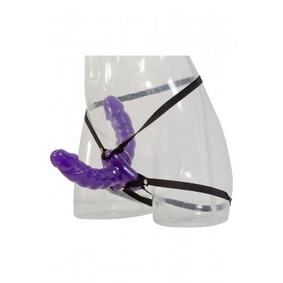 Stupendo strapon con fallo doppio viola, anatomicamente perfetto per doppia penetrazione. un articolo dedicato al sesso lesbo. Il fallo è curvo in jelly; è possibile regolare la lunghezza della parte interna o esterna a piacimento. • Lunghezza: 15.5cm
