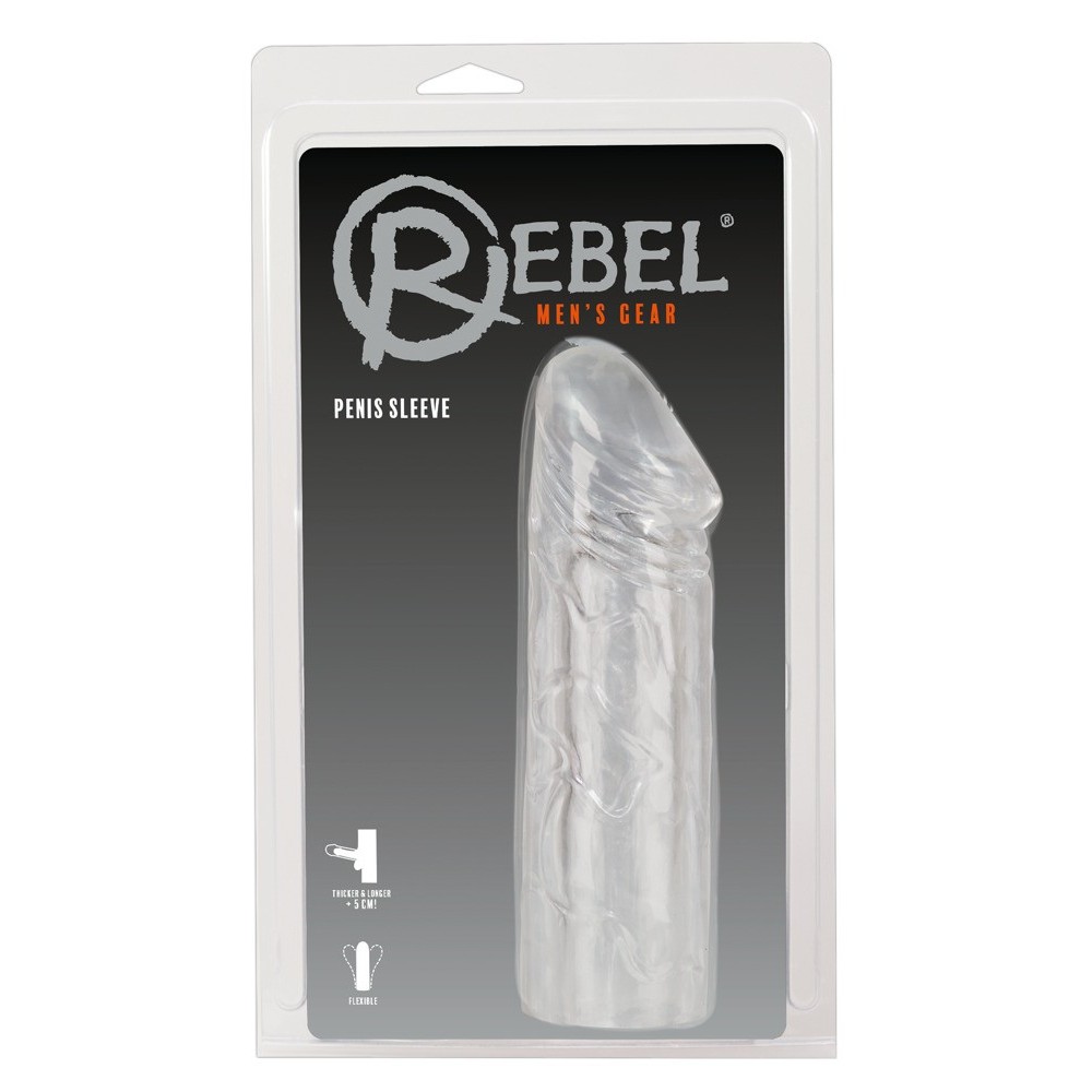 Guaina fallica mega dick sleeve. Prolunga fallica realizzata in morbido silicone trasparente con vene in rilievo per una maggiore stimolazione. Incrementerà la lunghezza del vostro pene di 5 cm, e il diametro di circa 2 cm. Particolarmente flessibile ed elastica. La sua aderenza renderà ancora più consistente la vostra erezione ritardando l?eiaculazione. • Lunghezza esterna 19 cm. • Lunghezza interna 14 cm • Diametro: 3 cm