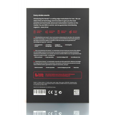 della guaina estremamente flessibile può essere regolata per una sensazione ancora più intensa. Inoltre, Handy può essere utilizzato con le tue custodie preferite. La lunghezza e la velocità delle corse sono variabili e possono essere regolate sul dispositivo. Grazie al suo potente motore, Handy può eseguire fino a 10 colpi al secondo e una lunghezza massima di 11 cm. Handy può essere connesso a Internet tramite WiFi crittografato grazie al suo processore dual core integrato. La lunghezza e la velocità delle corse possono essere controllate a distanza da qualsiasi parte del mondo tramite il sito web praticofeeling.com. Inoltre, sul sito Web è presente materiale video con cui è possibile sincronizzare l'Handy: i tratti delle maniche possono quindi essere adattati al video online. Può anche essere collegato a visori VR.