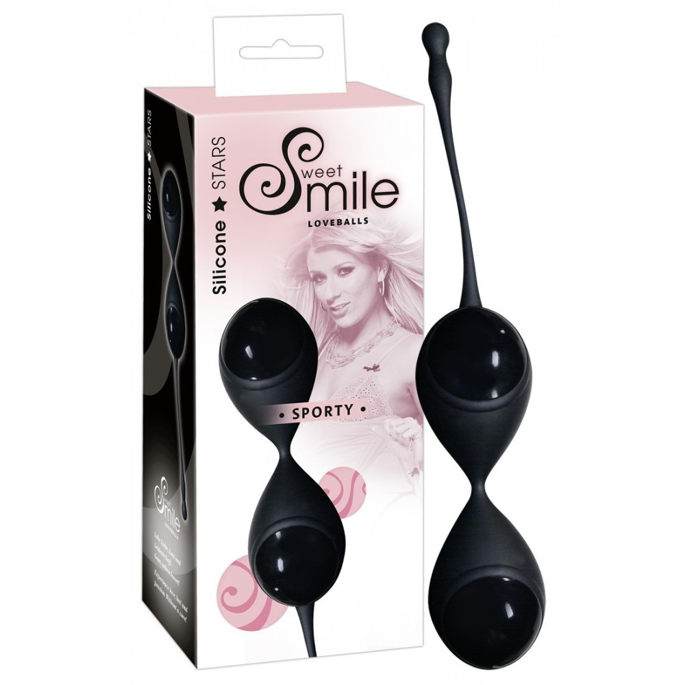 Palline delle geishe Smile nere con sistema silent, pallina vibrante all'interno che stimola, massaggia e tonifica i muscoli del pavimento pelvico e vaginale - per aumentare il piacere durante tutto il rapporto sessuale.