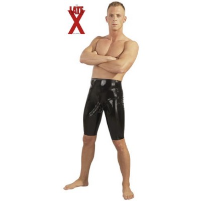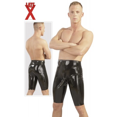 Mostrare cosa hai da offrire! Pantaloni in lattice nero con guaina per pene e testicoli. Struttura della guaina anatomica con rilievi stimolanti.