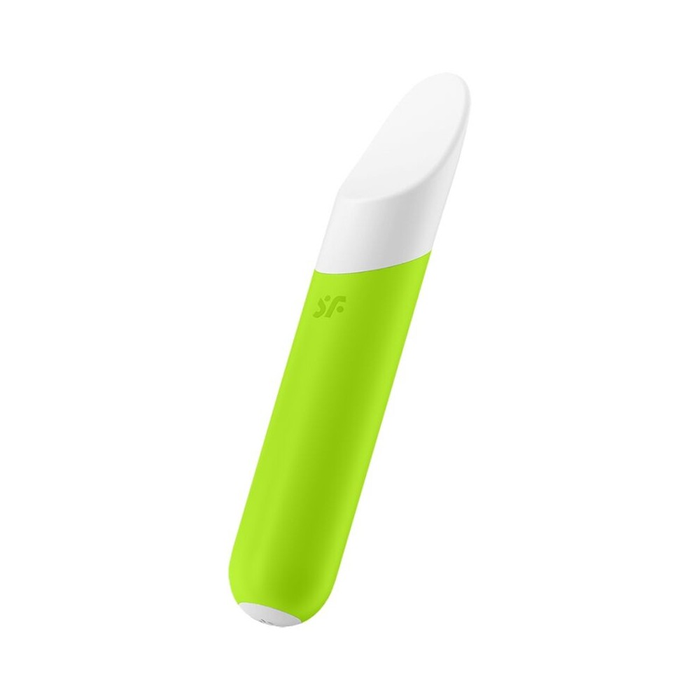 L'Ultra Power Bullet 7 della linea di mini vibratori Satisfyer ha un potente motore che fa pulsare la sua punta larga e leggermente curva per creare una sensazione irresistibile simile a una lingua.