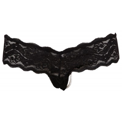Tanga in pizzo nero con bordo lavorato e collana di perline bianche all'interno...