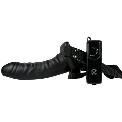 Elegante fallo di gomma nera morbida e liscia. Interno cavo - comodo da usare attraverso le pratiche cinghie per essere indossato in modo confortevole.