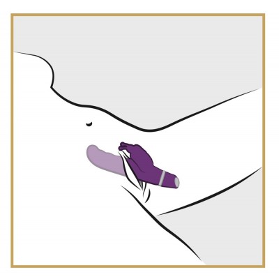 Vibratore con stimolatore a forma di farfalla. Con due Motori: uno a punta per il punto-G ed uno per il clitoride.