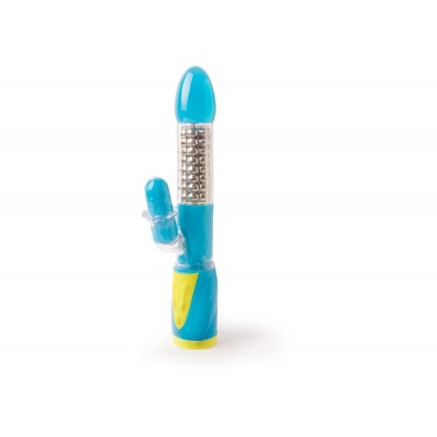 Potente vibratore rabbit con sfere rotanti all'interno, glande pronunciato e superficie liscia. Ben 7 ritmi di vibrazione e 3 velocità di rotazione, controllate separatemante tramite il tocco di un pulsante.